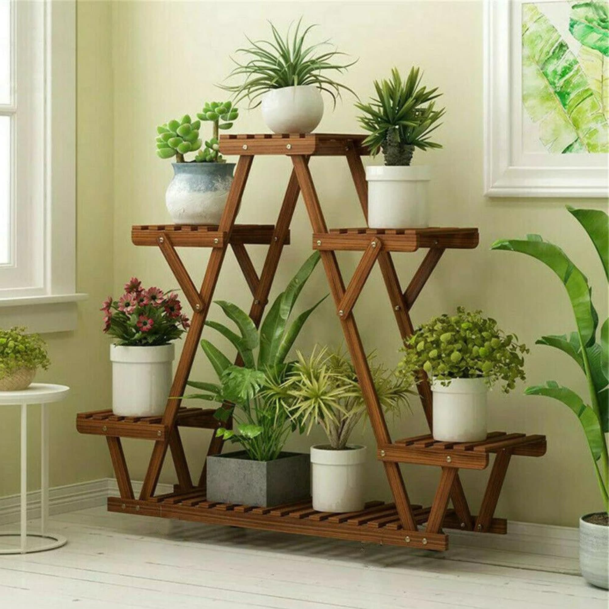Unho Triangular Plant Stand Indoor 23 Inch High Wooden Shelf 6 Potted Flower Mini Succulent Display Rack Holder For Patio Balcony Sunroom Living Room Window Decor Patio Lawn Garden Amazon Com