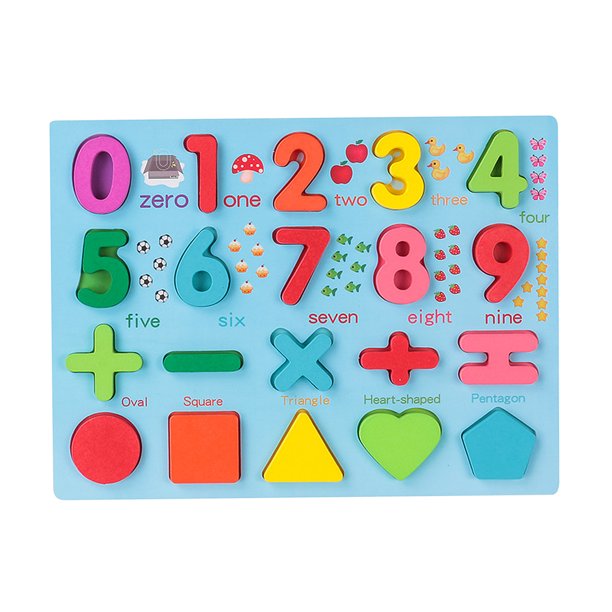 Kids Children Wooden Number Letter Shape Puzzle Recognition Board Colorful Early 0 9 And Shape Walmart Ca